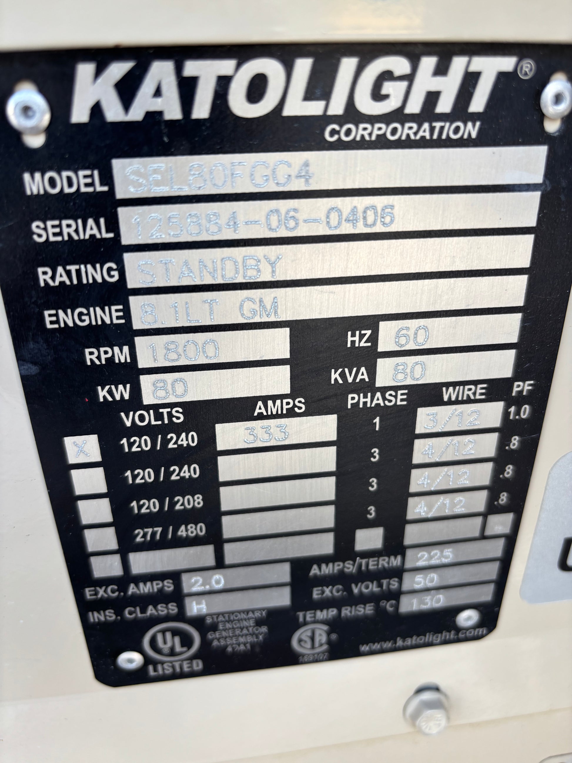 2006 Katolight 80kw 100Kva Natural Gas Generator